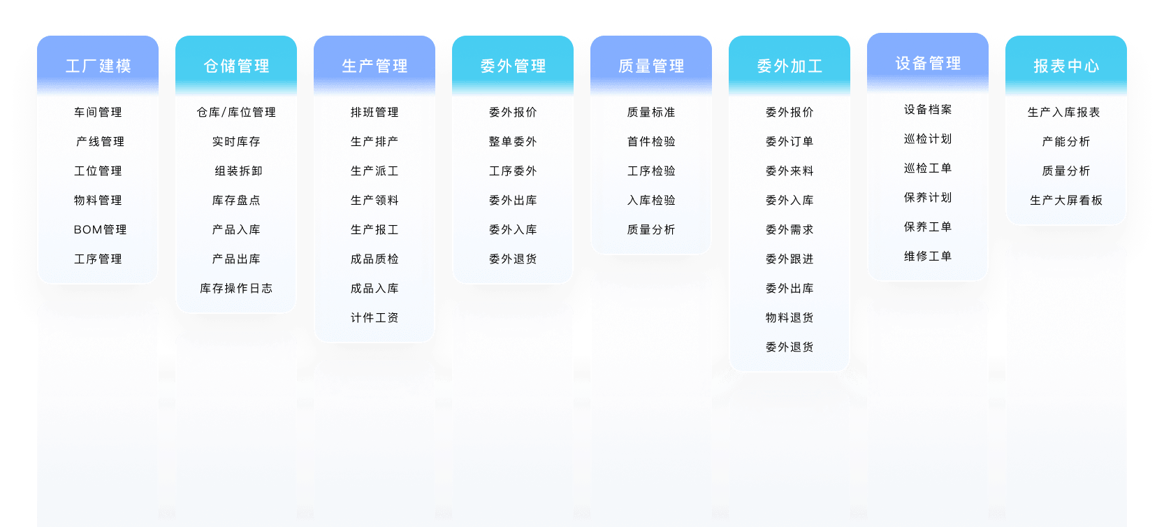 对于提供了接口的数控机床、注塑机、冲压机等设备,可通过MQTT、OPC等物联网协议进行通信获取设备实时状态以及报工数据,减轻了员工的报工操作复杂性,并形成设备OEE、MTBF等指标,更有效的评估车间效能