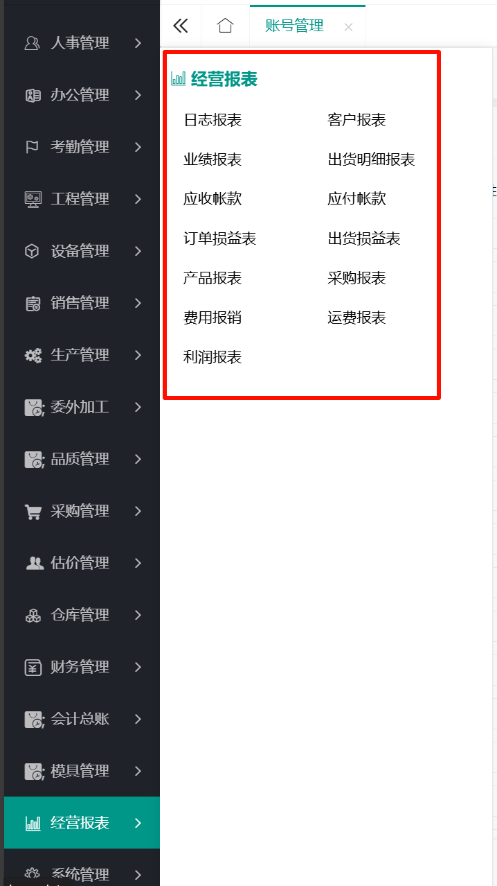 3.实时报告,数据的输入全部集中在一个系统内部,方便数据抓取,生成各个不同管理维度的报告,可以定义业务部门不同的报告(销售,采购,仓库,财务,生成,人事等),报告是实时更新的,不存在数据滞后;
