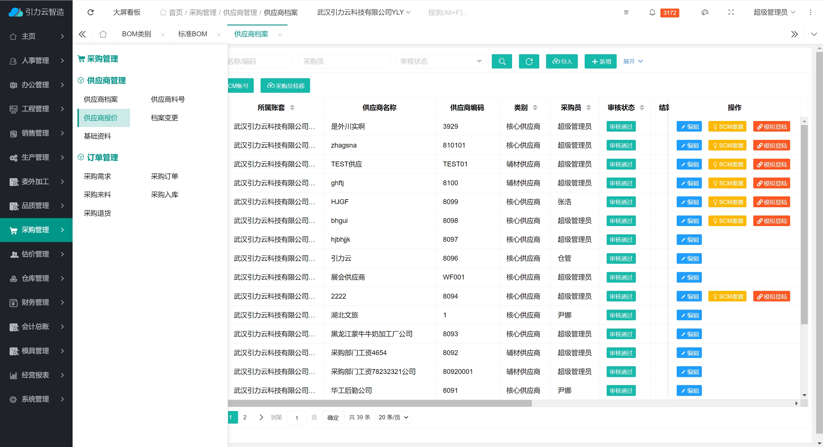 5. **数据分析和报告**:系统提供数据分析工具,帮助企业收集、分析和报告关键数据,如采购成本、供应商绩效、库存水平等,以支持决策制定。