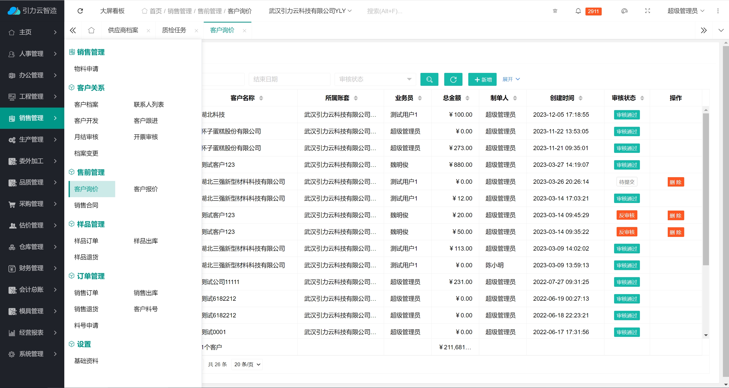 引力云ERP系统中的销售管理模块致力于帮助企业优化销售流程,提高销售业绩,增强客户满意度。销售管理模块通常包含以下几个核心功能: